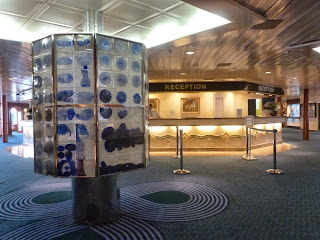 The Sky Bar was popular and well used, and we were given coffee in the attractive Clipper Bar whilst Crew Lifeboat Drill was held. I remembered the beautiful jewel-coloured original door handles remaining on the ship, and the wonderful piece of glass artwork in the Reception area, all of which I could happily have lived with!