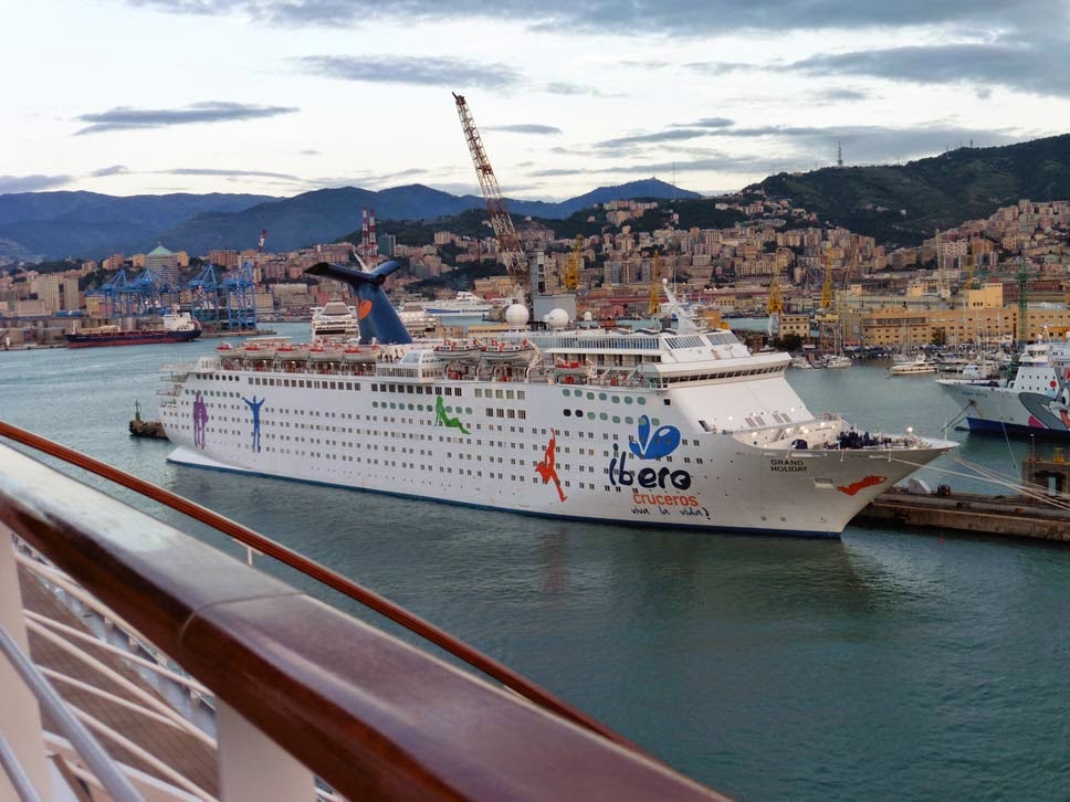 Grand Holiday, seen as we sailed slowly into Genoa harbour