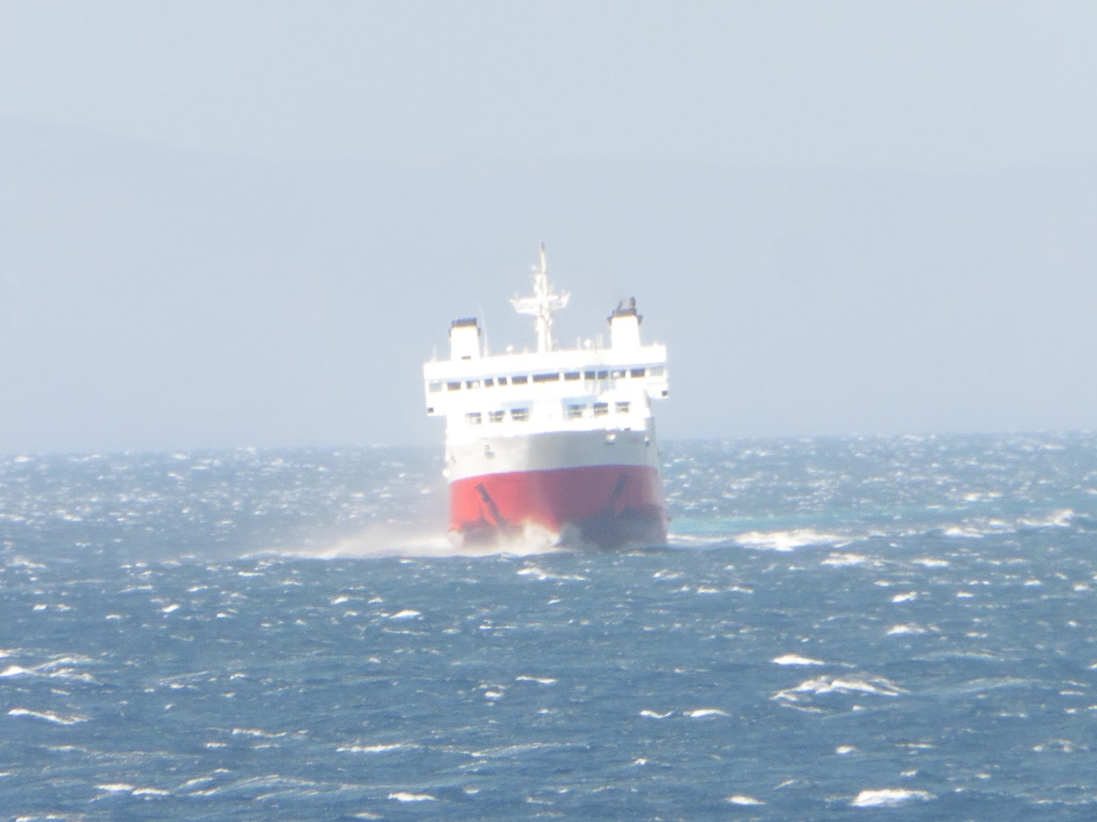 The abiding memory of boarding the Superferry II was seeing a gentleman who was hauling crates of paperwork down the ship’s stern ramp as we waited to embark. As it was a slightly windy day, one of the lids became detached and papers went flying everywhere, including into the sea. Chaos, and he looked pretty downcast afterwards!